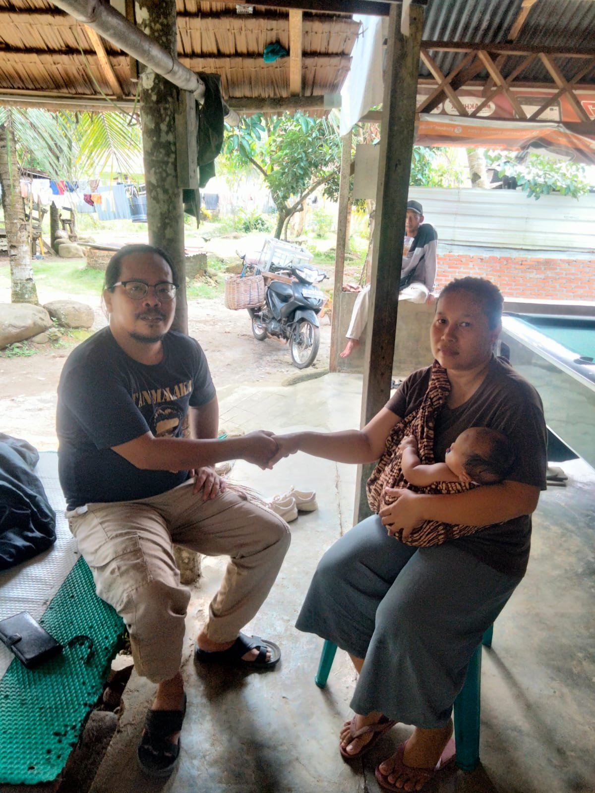 Foto : Istri Al Amin mengendong anaknya yang masih balita. Wanita malang ini mengaku sedih atas perlakuan yang dialami suaminya.(ist)