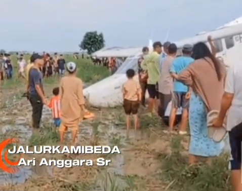 Insiden itu langsung menarik perhatian warga yang bergegas ke lokasi untuk memberikan pertolongan kepada para awak pesawat.