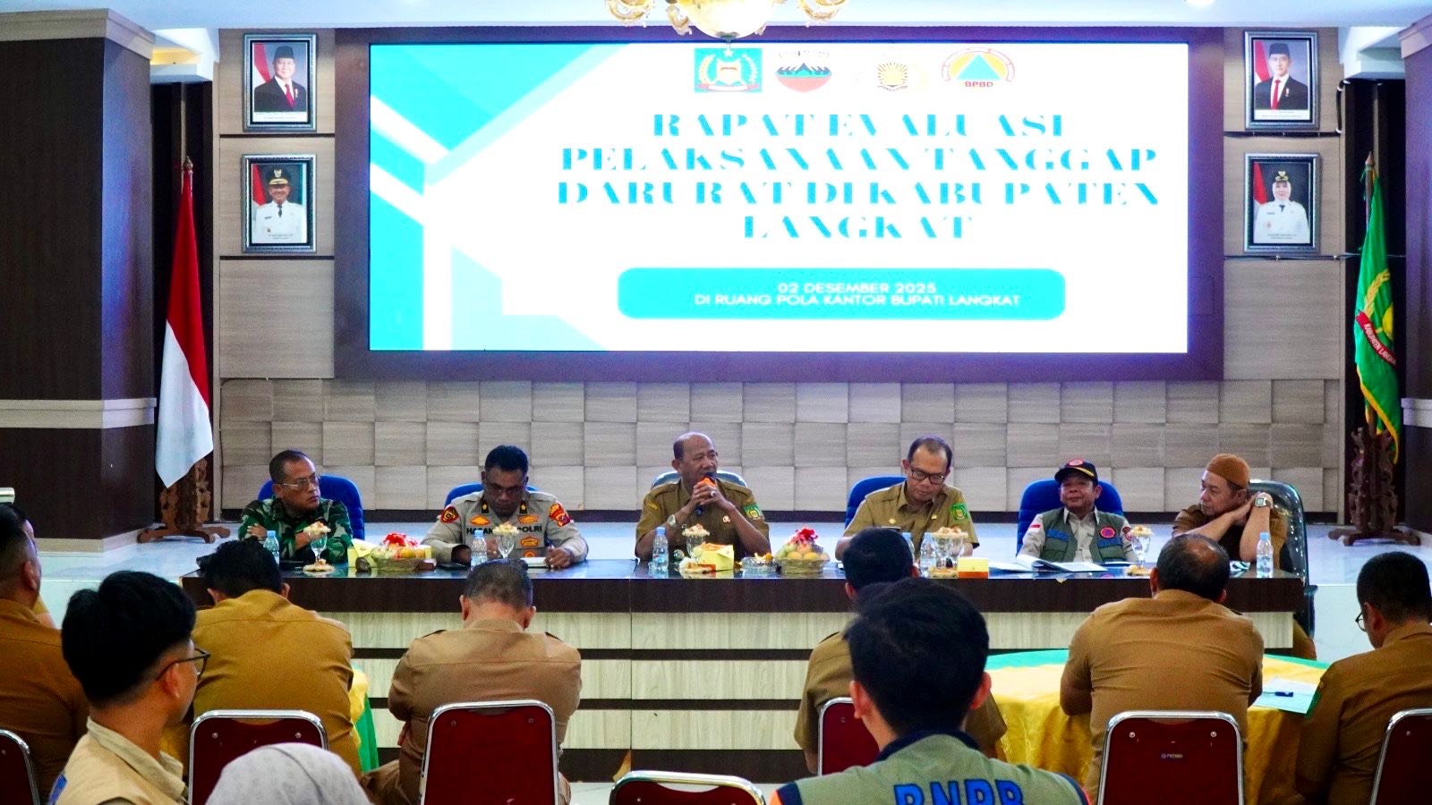 Kabupaten Langkat bergerak dalam mode darurat penuh. Bupati Langkat H. Syah Afandin, SH memimpin rapat evaluasi besar-besaran untuk mengatur langkah cepat penanganan banjir di 16 kecamatan, Selasa (2/12/2025), di Ruang Pola Kantor Bupati Langkat.