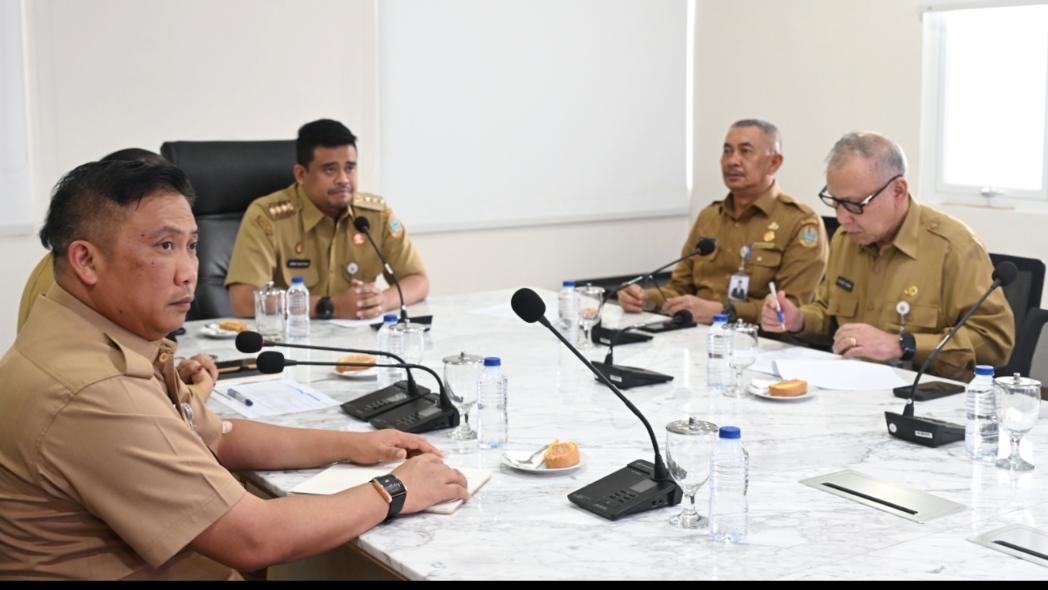 Foto : Gubernur Sumatera Utara Bobby Nasution didampingi Pj Sekretaris Daerah Sumut Sulaiman Harahap, Asisten Perekonomian dan Pembangunan Effendy Pohan, Kadis Kominfo Sumut Erwin Hotmansah Harahap.(Ist)