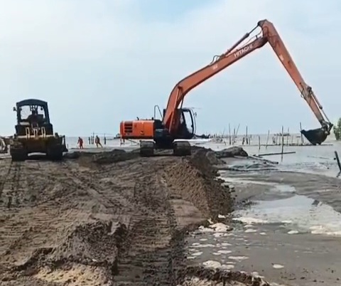 Belakangan, sumber pasir disebut beralih ke darat. Namun, warga kembali mempersoalkan asal-usul material yang diduga berasal dari galian C ilegal di wilayah Batang Serangan, yang disebut-sebut milik seseorang bernama Hasan.