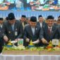 Ketua DPD Partai Gerindra Sumatera Utara Ade Jona Prasetya, Anggota DPR RI Sugiat Santoso, serta kader dan pengurus Partai Gerindra.